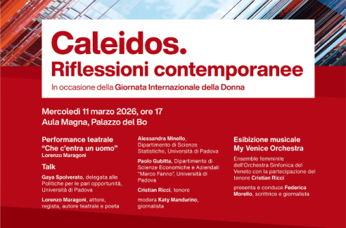 In occasione della Giornata internazionale della donna, mercoledì 11 marzo l'Aula Magna di Palazzo del Bo ospita un pomeriggio dedicato al superamento degli stereotipi di genere attraverso teatro, dialogo e musica.